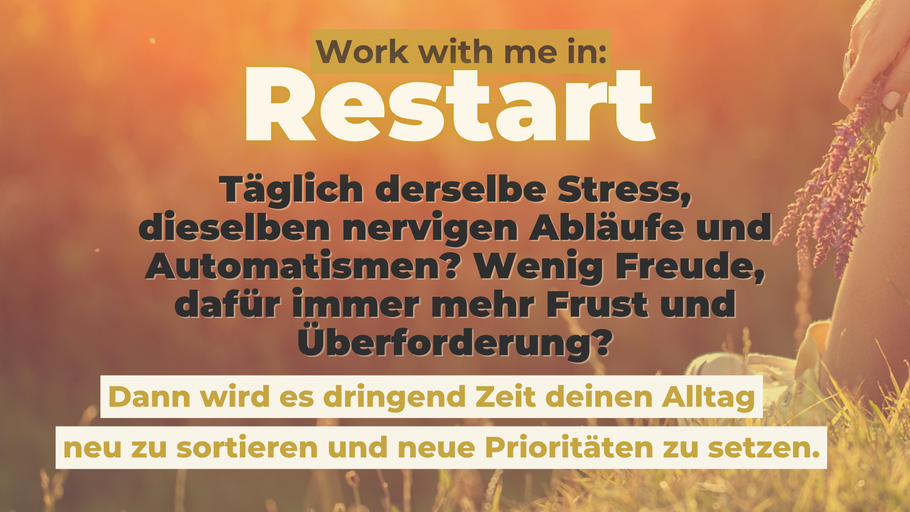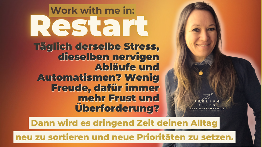 Manchmal muss man dann (ohne weiter lange nachzudenken, denn das hat dich bisher ja auch nicht wirklich weitergebracht) einfach anfangen und den ersten Schritt in eine neue Richtung wagen. Genau dafür ist RESTART gedacht: einfach mal anfangen!